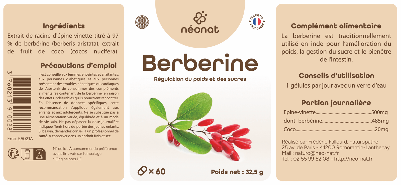 Le complément berbérine naturelle équilibre glucose de Néonat contribue à maintenir un métabolisme sain. Il participe aussi à la régulation du cholestérol.