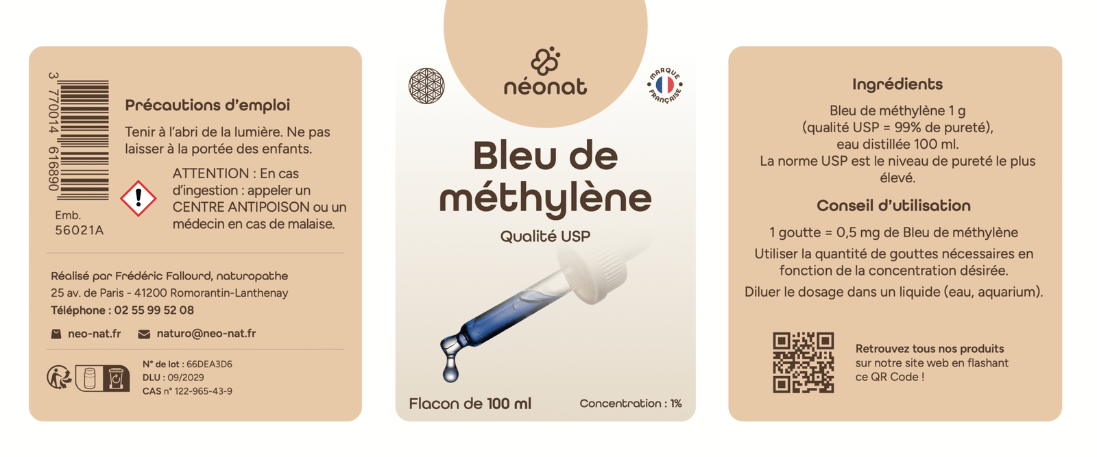 Produit hautement purifié, le bleu de méthylène Néonat est reconnu pour sa qualité constante et sa fabrication française rigoureuse. Idéal pour les laboratoires, les études ou les applications nécessitant une solution parfaitement limpide et stable.