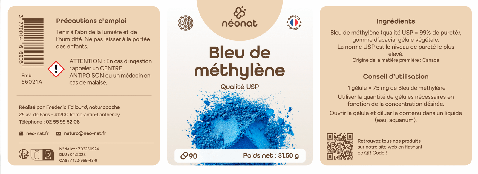 – Bleu de méthylène (qualité USP = 99% de pureté)