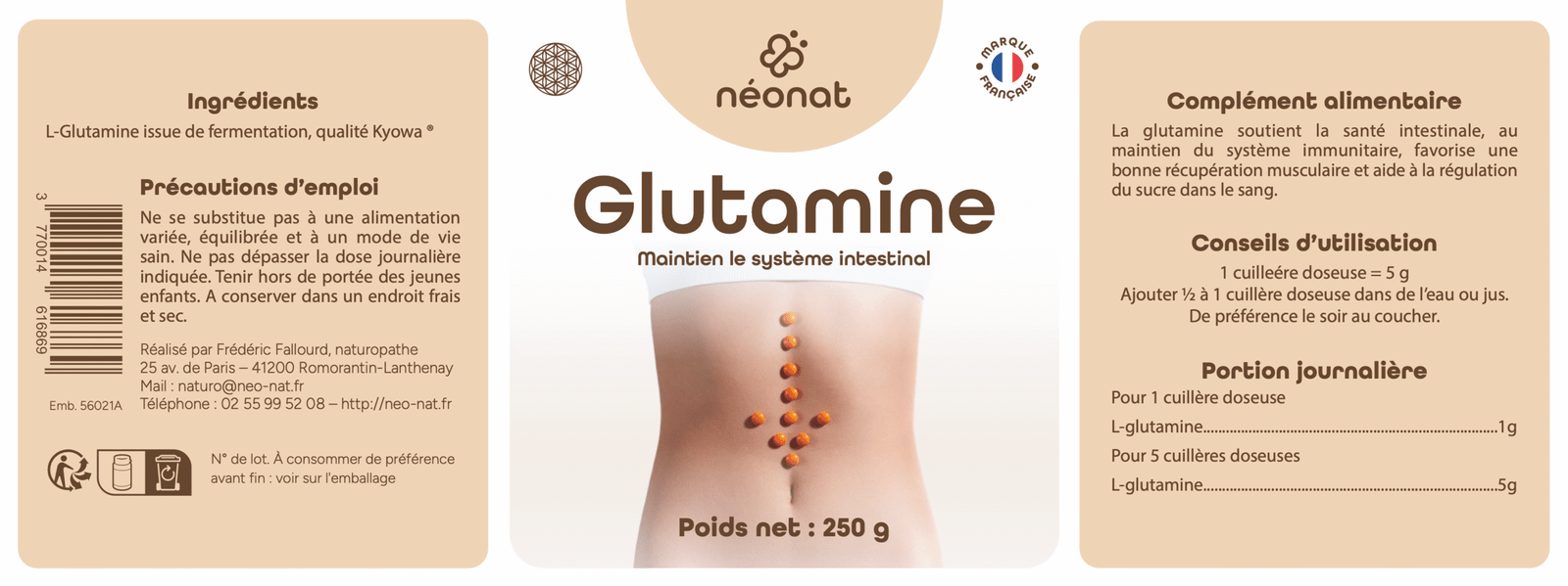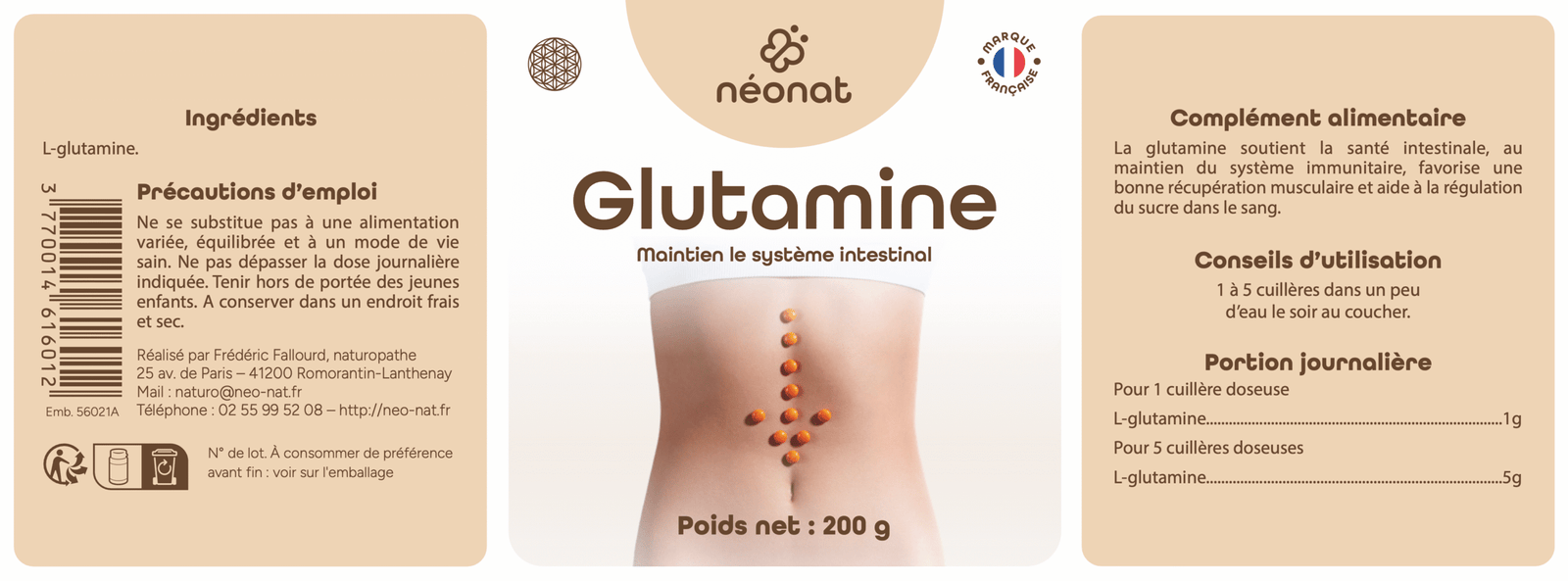 Le complément glutamine de Néonat contient de la L-glutamine pure, un acide aminé essentiel au bon fonctionnement de l’organisme.