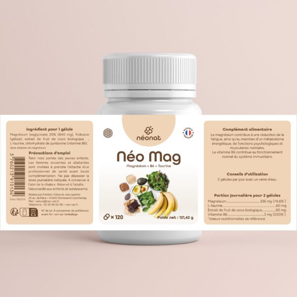 Le complément magnésium B6 taurine de Néonat aide à réduire la fatigue, à apaiser le stress et à améliorer la qualité du sommeil. Sa formule naturelle réunit trois éléments essentiels au bon fonctionnement du système nerveux et musculaire.